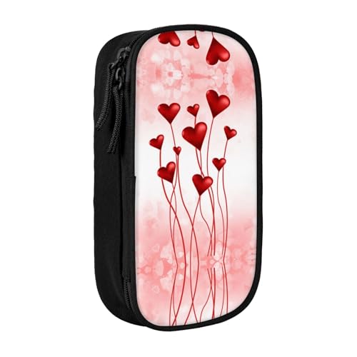 EZDLOWVBA Valentines Day Heart Shape Balloon Print Pencil Case for Boys Girls Secondary School Pen Holder for Kids Girls Pen Pouch Pencil Bag Office College Stationery