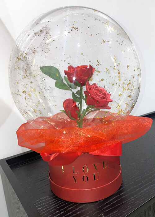 Luxe Red Rose Bubble Valentines Day Balloon Decoration COMES INFLATED