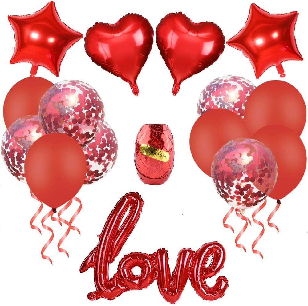 DOJoykey 16pcs Valentines Day Balloon Decoration Set, Love Foil Balloon, Red Latex Balloons, Star and Heart Shape Foil Balloons Red Ribbon for Valentines Day, Engagement and Wedding Party Decoration