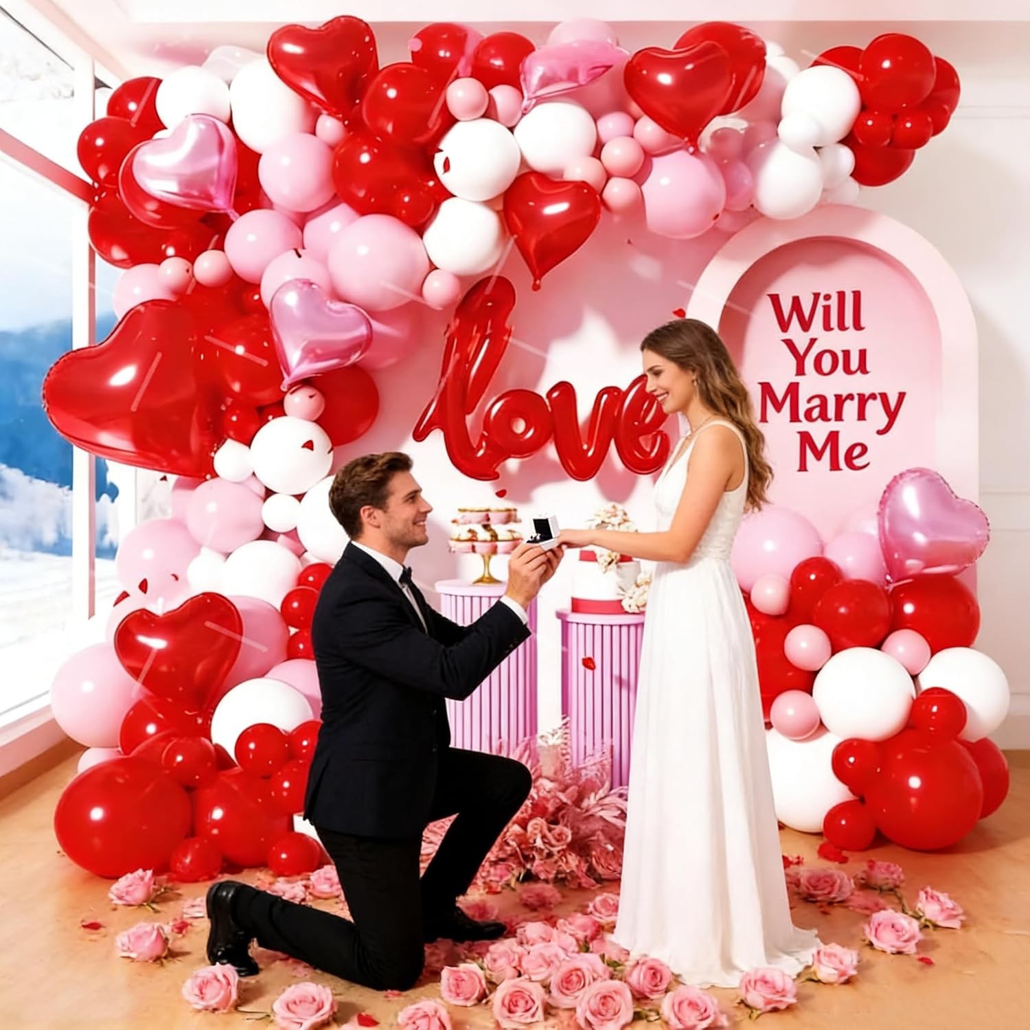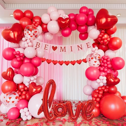 Valentines Day Balloon Garland Kit, Red Hot Pink White Balloons for Valentines Day Proposal Engagement Wedding Party Decoration