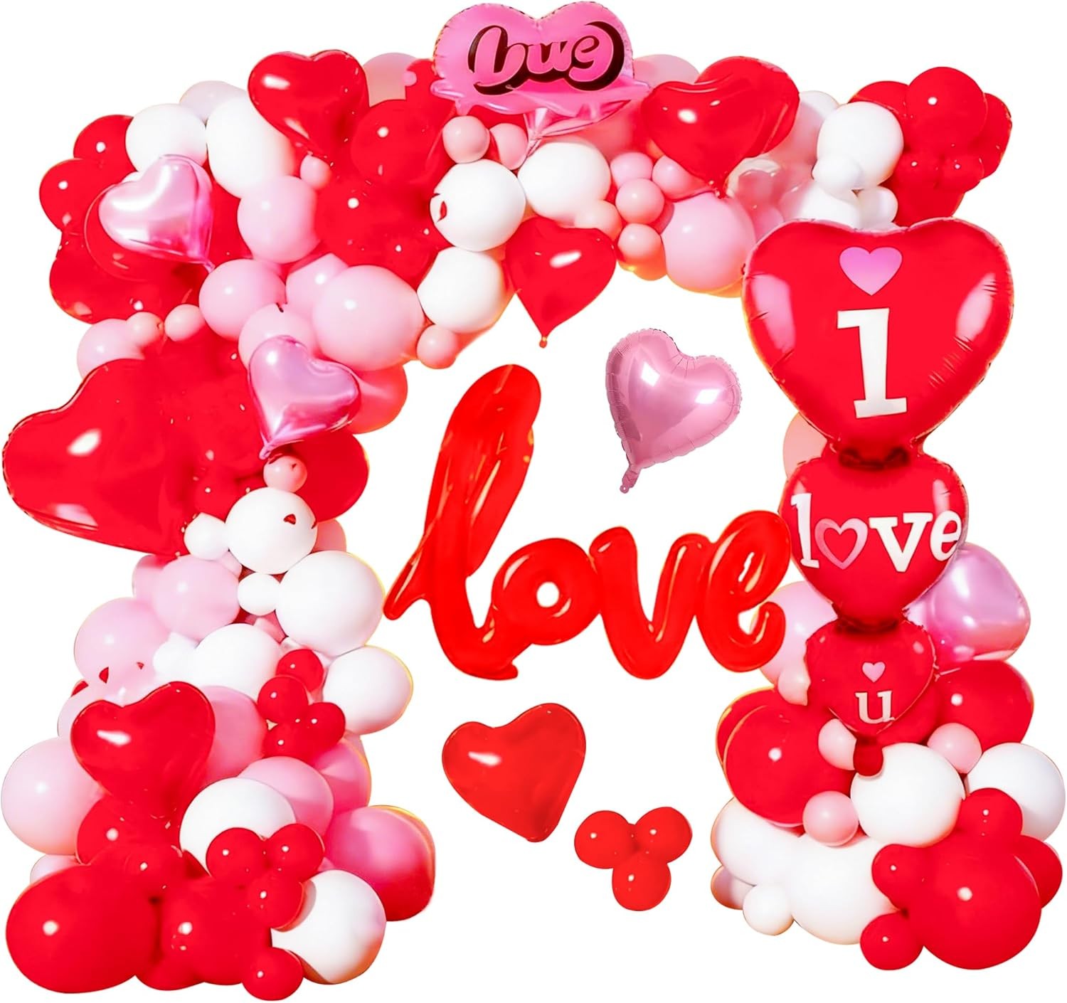 KUKUTrue® Valentines Day Balloon Arch, Valentine Balloon Arch Kit, Heart & LOVE Balloon, I Love You Balloons, Valentines Decorations, Romantic Room Decorations for Anniversary, Proposal, Party