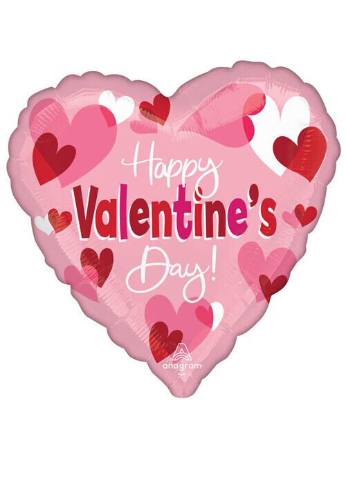 Pink Hearts Valentines Day Heart Foil Balloon, 45cm