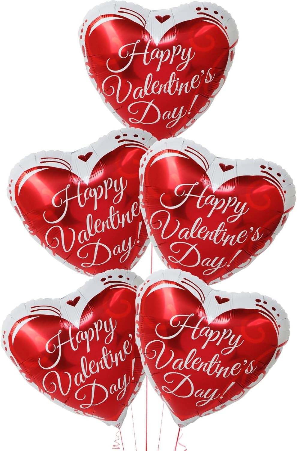 5pcs Red Heart Balloons Happy Valentine's Day Love Heart Balloons 18 Inch Valen
