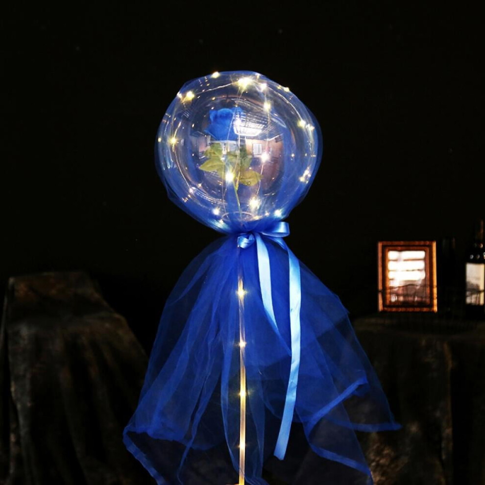 Valentine's Day Balloons LED Luminous Balloon Rose Bouquet, Transparent Balloons with Flower for Wedding Party Home