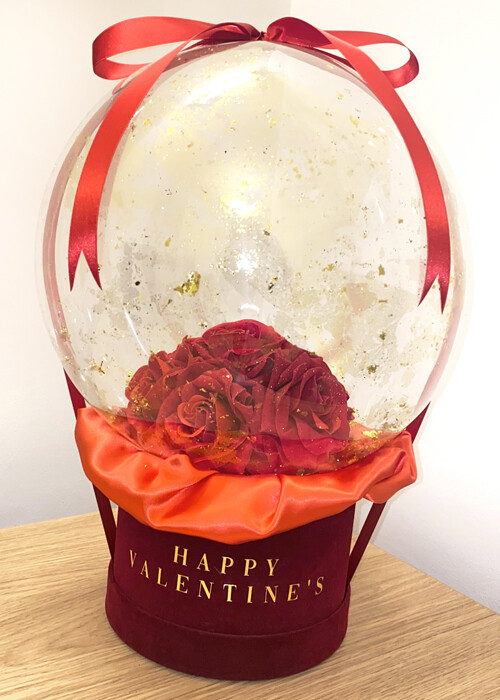Deluxe Dark Red Roses Bubble Valentines Day Hat Box Balloon COMES INFLATED