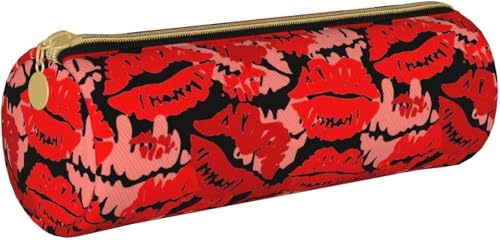 YINGD Leather Pencil Case Red-Lipstick-for-Valentines-Day Holder Pouch Box Makeup Bag Organizer with Zipper for School Office