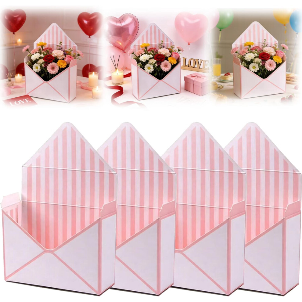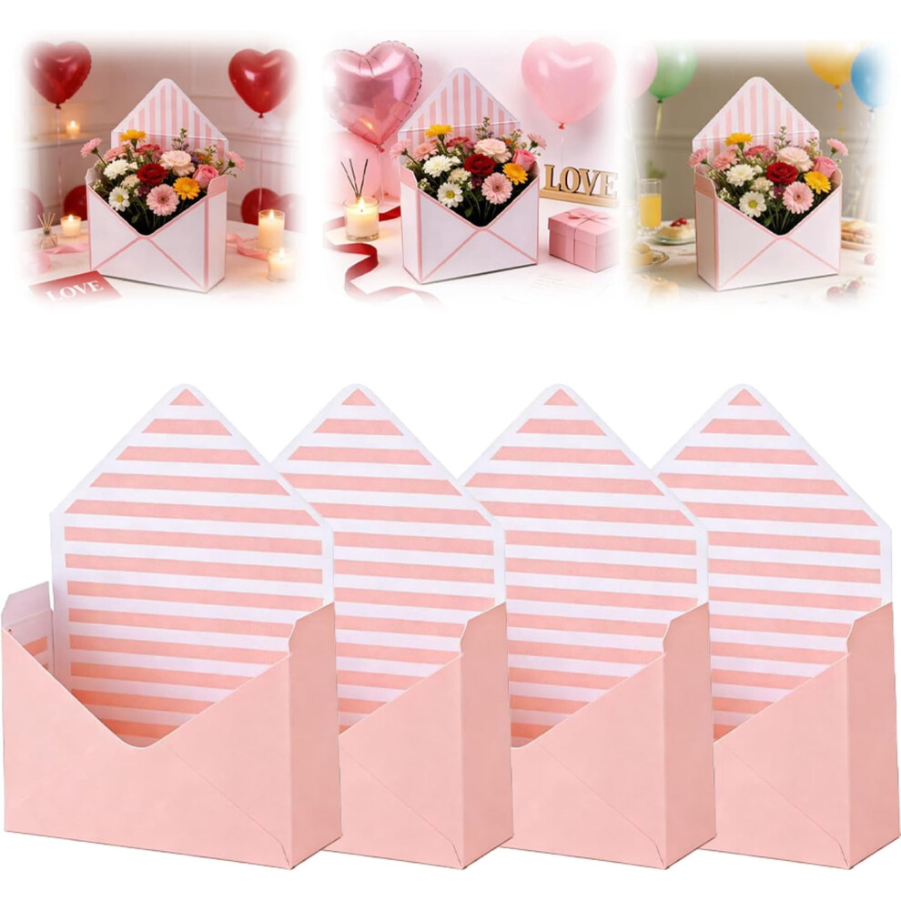 Valentine Envelope Boxes, Envelope Boxes for Gifts, Valentines Day Envelopes Box for Florist Wedding Party Birthdays, Striped Style, Pink (A 4PC)