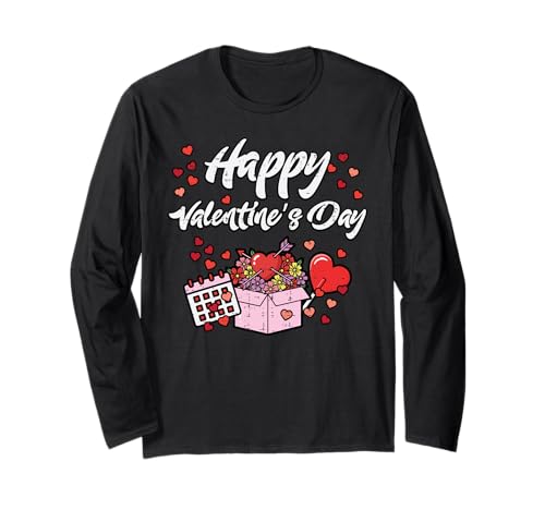 Happy Valentines Day Box Heart Calendar Women Girls Kids Men Long Sleeve T-Shirt