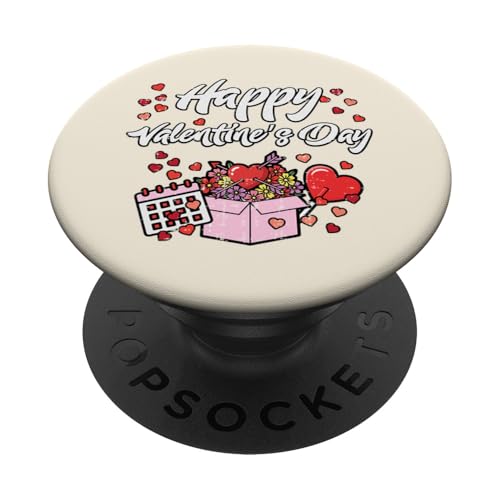 Happy Valentines Day Box Heart Calendar Women Girls Kids Men PopSockets Adhesive PopGrip