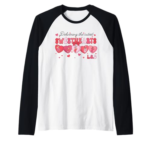 Delivering Cutest Sweethearts L&D Nurse Heart Valentines Day Raglan Baseball Tee