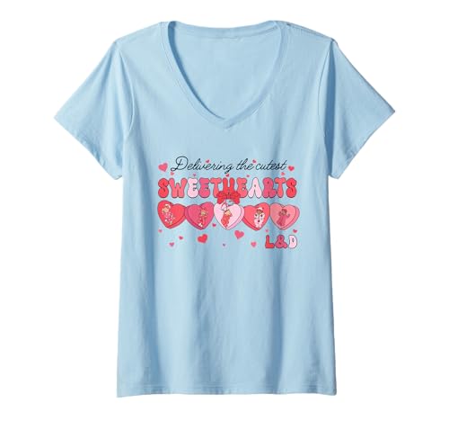Women's Delivering Cutest Sweethearts L&D Nurse Heart Valentines Day V-Neck T-Shirt