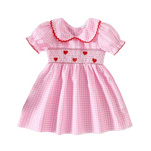 Toddler Girls Valentine's Day Party Dress Plaid Short Sleeve Costume for Dance Celebration Baby Outfit Girl Birthday 4 Year Old Gifts Age 2 One