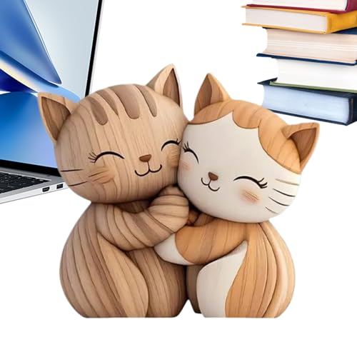 Desk Sign for Cats, Two-Dimensional Wooden Figure Couple Cats Desk Decoration – Animal Home Decoration for Valentine's Day Birthday Friends Bedroom Living Room Bookcase Entrance R