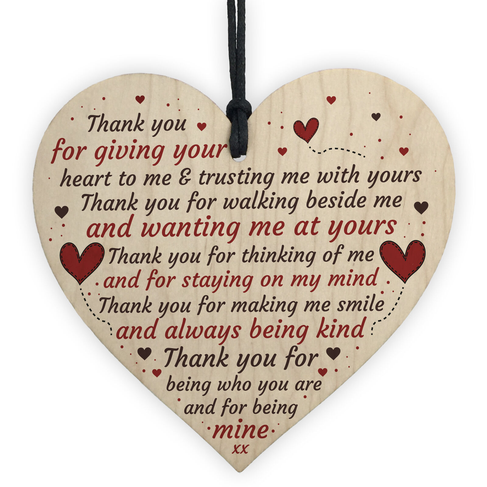 Thank You Heart Plaque Romantic Anniversary Valentines Day Gift For Husband Wife