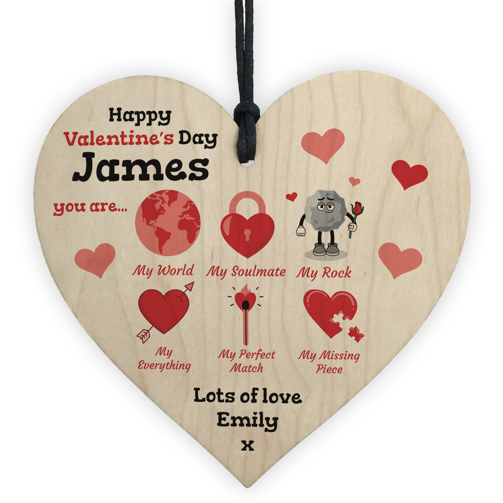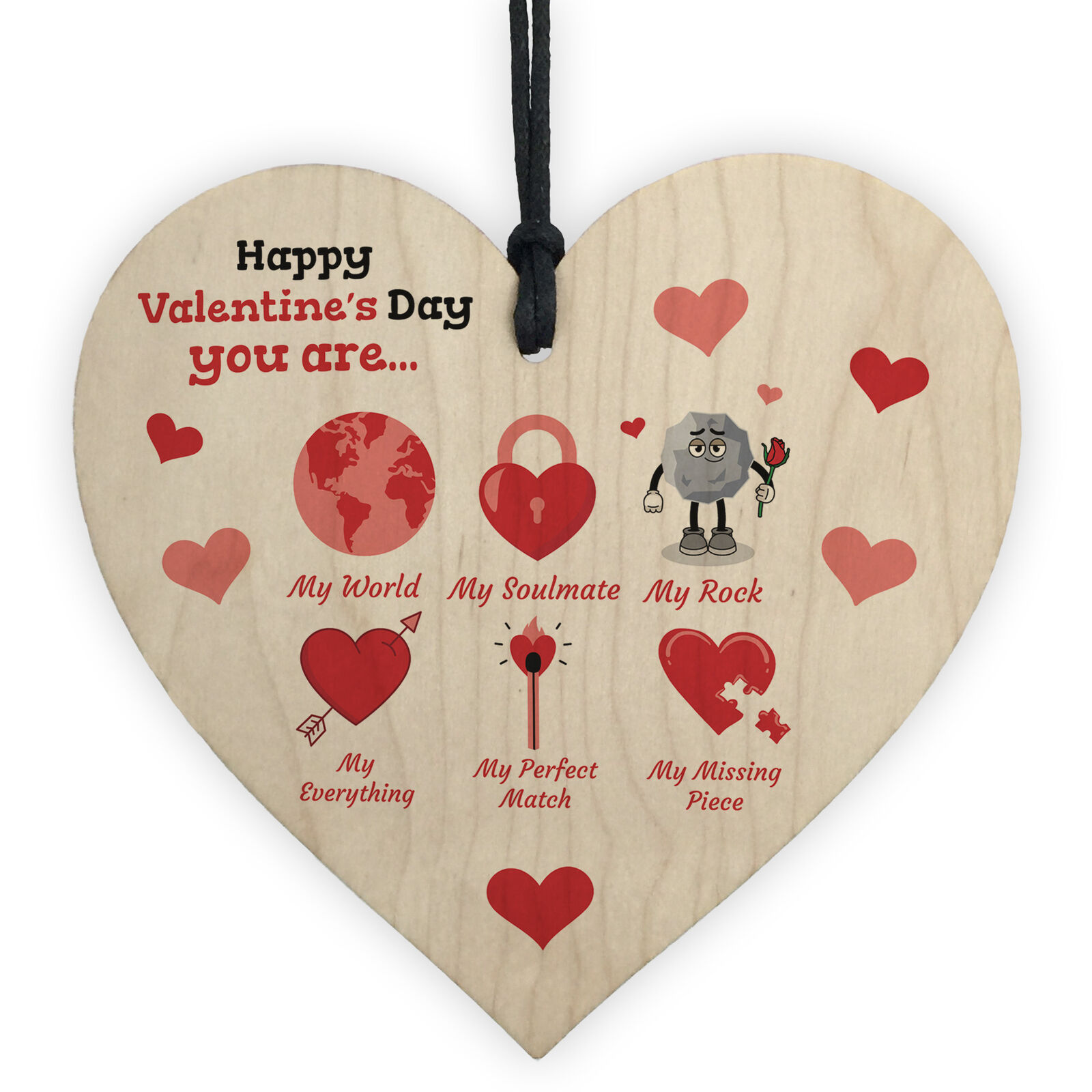 Valentines Day Gift For Boyfriend Girlfriend Wife My Rock My World Wood Heart