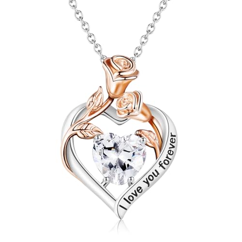 EYQV Gifts for Women Girls, Graduation Gifts for Her, Rose Heart Necklace for Women, Mothers Day Valentines Day Christmas Birthday Gift for Wife Girlfriend Mum Grandma Daughter Sister Granddaughter