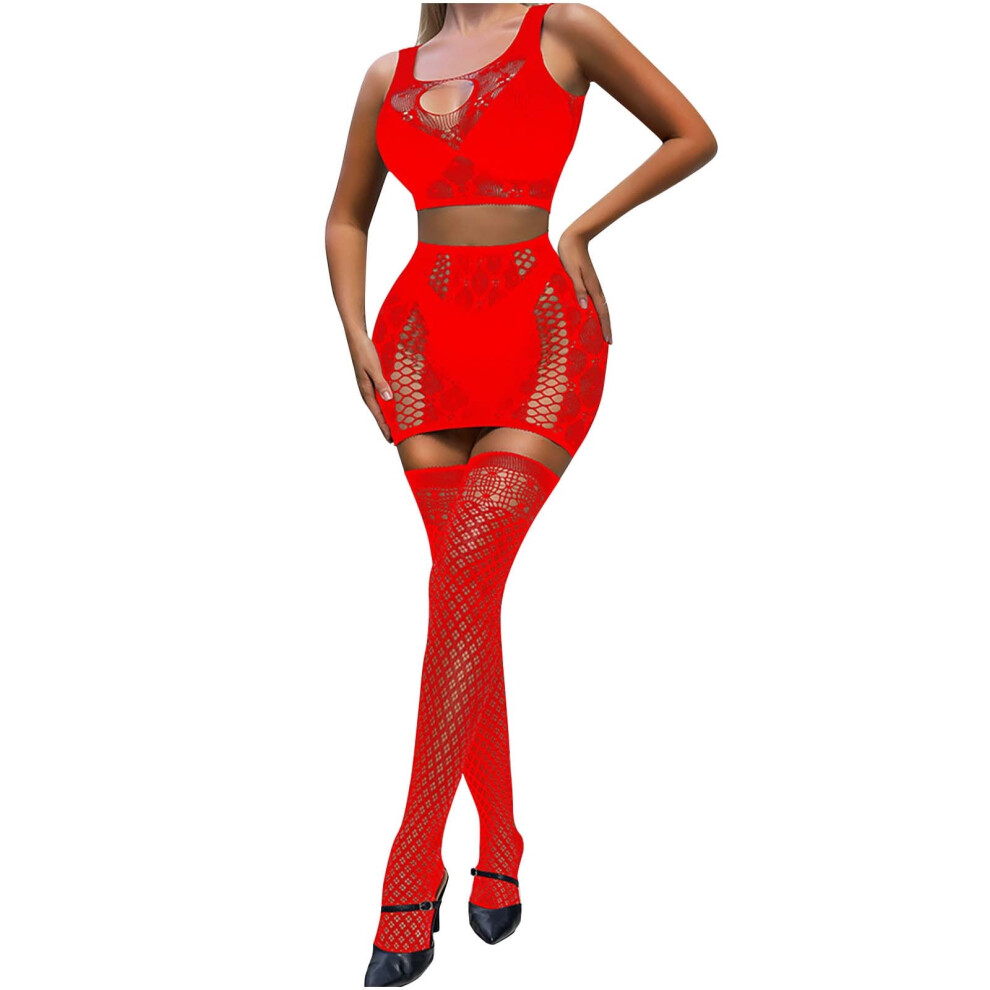Women's Lingerie Bodysuit Set 2025 Valentine's Day Sexy Lingerie Fishnet Seamless Mesh Netting Chemise Hollow Out Bodysuit Sleepwear Red