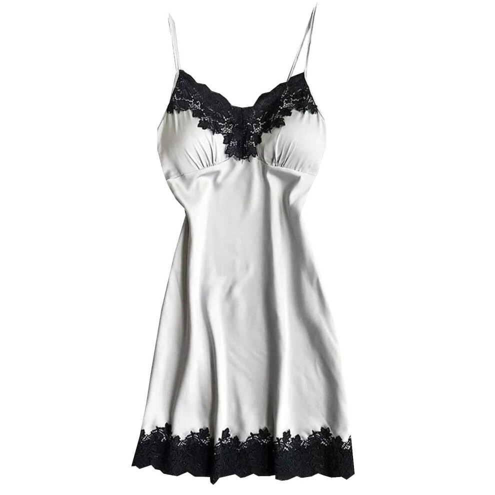 Nighty for Women Long - Valentine'S Day Pajamas Sexy Lingerie Milk Silk Strap Nightgown (White M)
