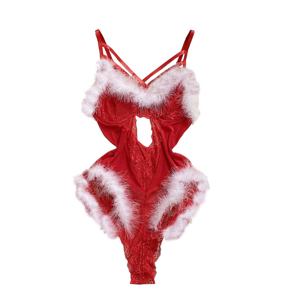 Women's Lingerie Bodysuit Set 2025 Valentine's Day Christmas Lingerie For Lace Trim Spaghetti Straps V Neck Push Up Bodysuit Lingerie Red
