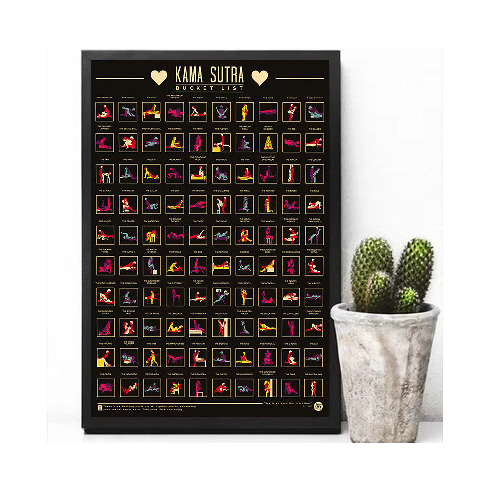 Wall Art 100 Kama Sutra Anime Movie Date Bucket List Poster and Print for Home Decor Valentines Day Gift (It Can't Be Scratched)