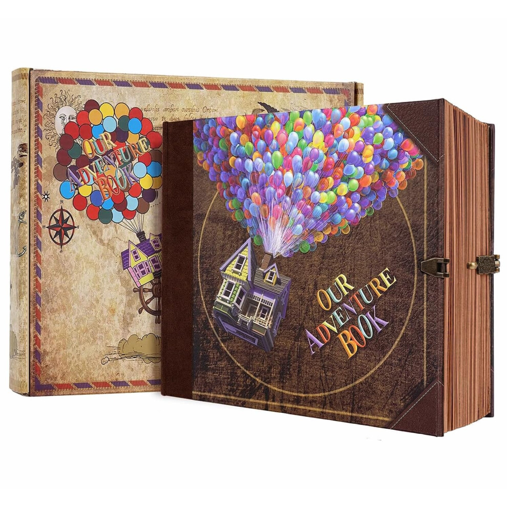 Album Scrapbook, Retro Album, Our Adventure Book, Movie Up Travel Scrapbook for Anniversary Wedding Holiday Valentines Day Birthday (Red) … (Balloon Lock Book)
