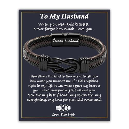 YBISNAIRE Mens Gifts Husband Christmas Valentines Day Fathers Day Birthday Gifts for Husband, Cool Love Infinity Leather Bracelets Gift for Him, Ideas Present for Anniversary Retirement Graduation