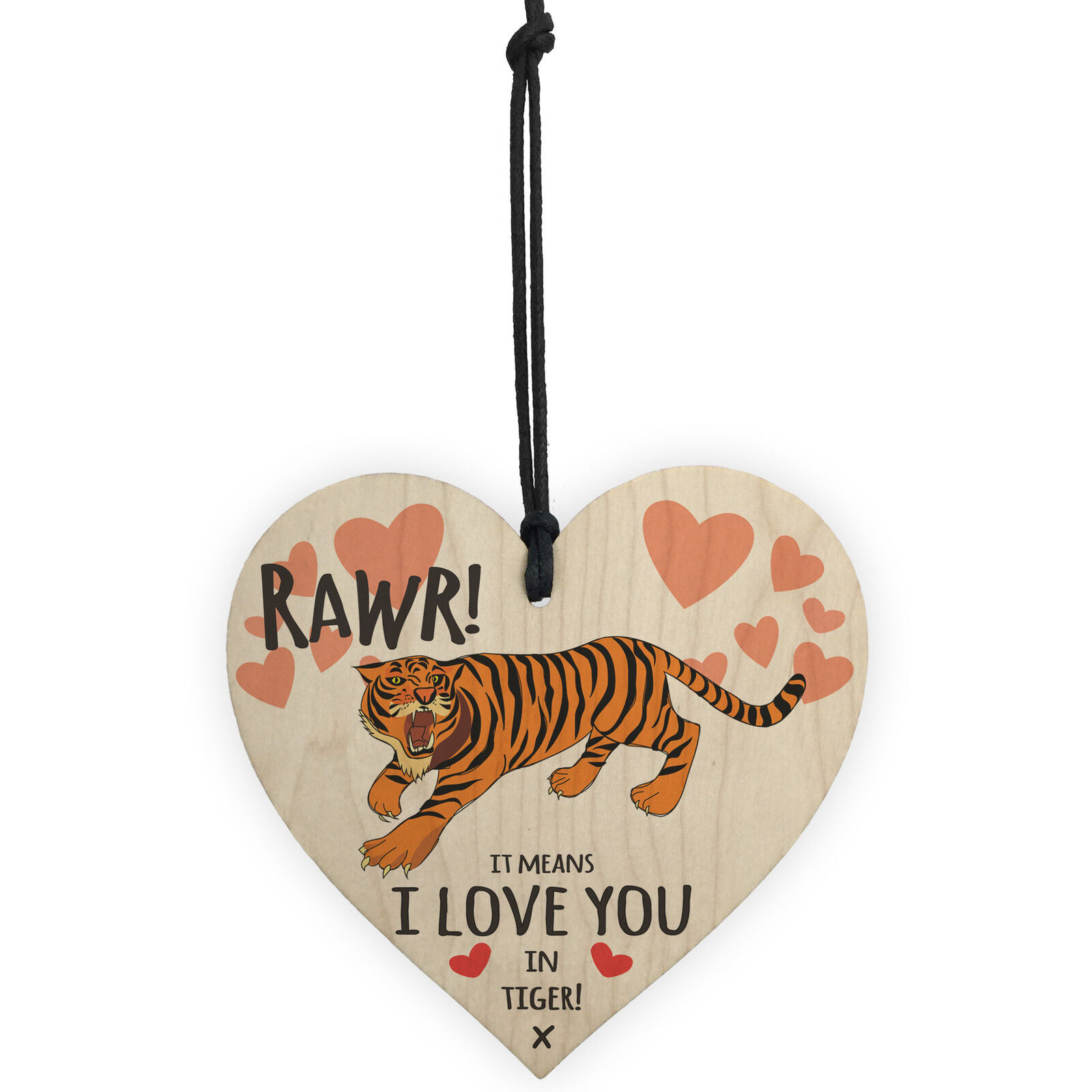 Rawr I Love You Novelty Wooden Hanging Heart Gift Valentines Day Present Sign