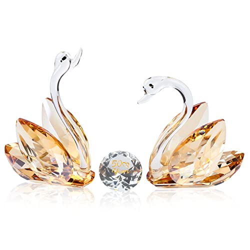 YWHL 50th Wedding Anniversary Swan Gifts for Parents, 50 Years Anniversary for Couple, Crystal Figurine Decoration with 50 Years of Love Diamond, Valentines Day Present Romantic Gifts Birthday Gift