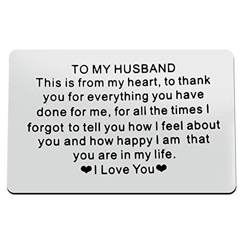 Wallet Card Insert for Husband Engraved Metal Card Birthday Anniversary Valentines Day Present for Him Men Thank You Husband Gifts Idea Christmas Wedding Day Gifts