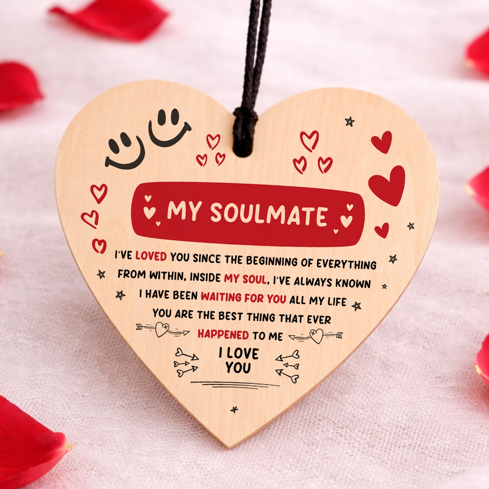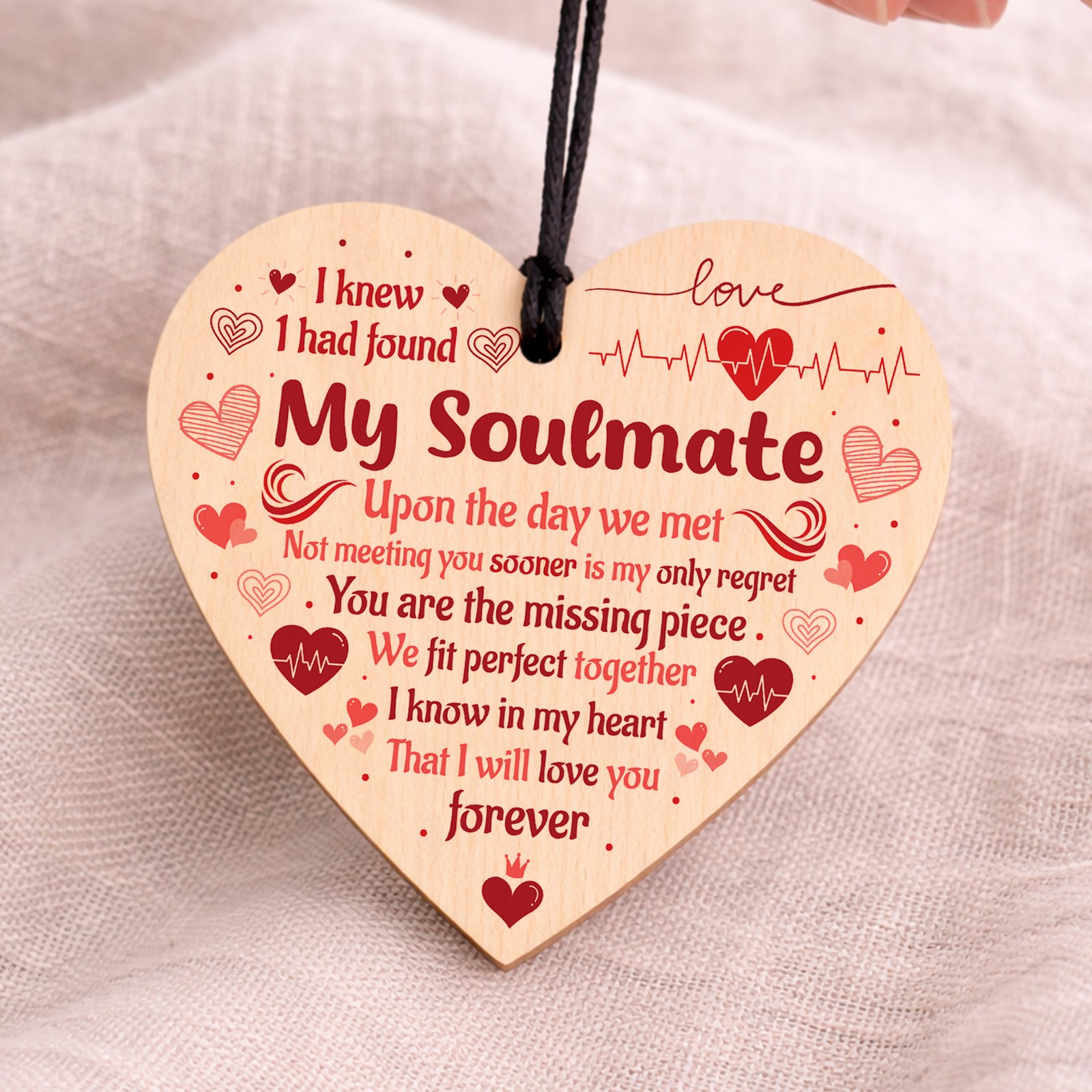 RED OCEAN Soulmate I Love You Cute Hanging Heart Plaque Valentines Day Couples Relationship Present Sign Secret Santa