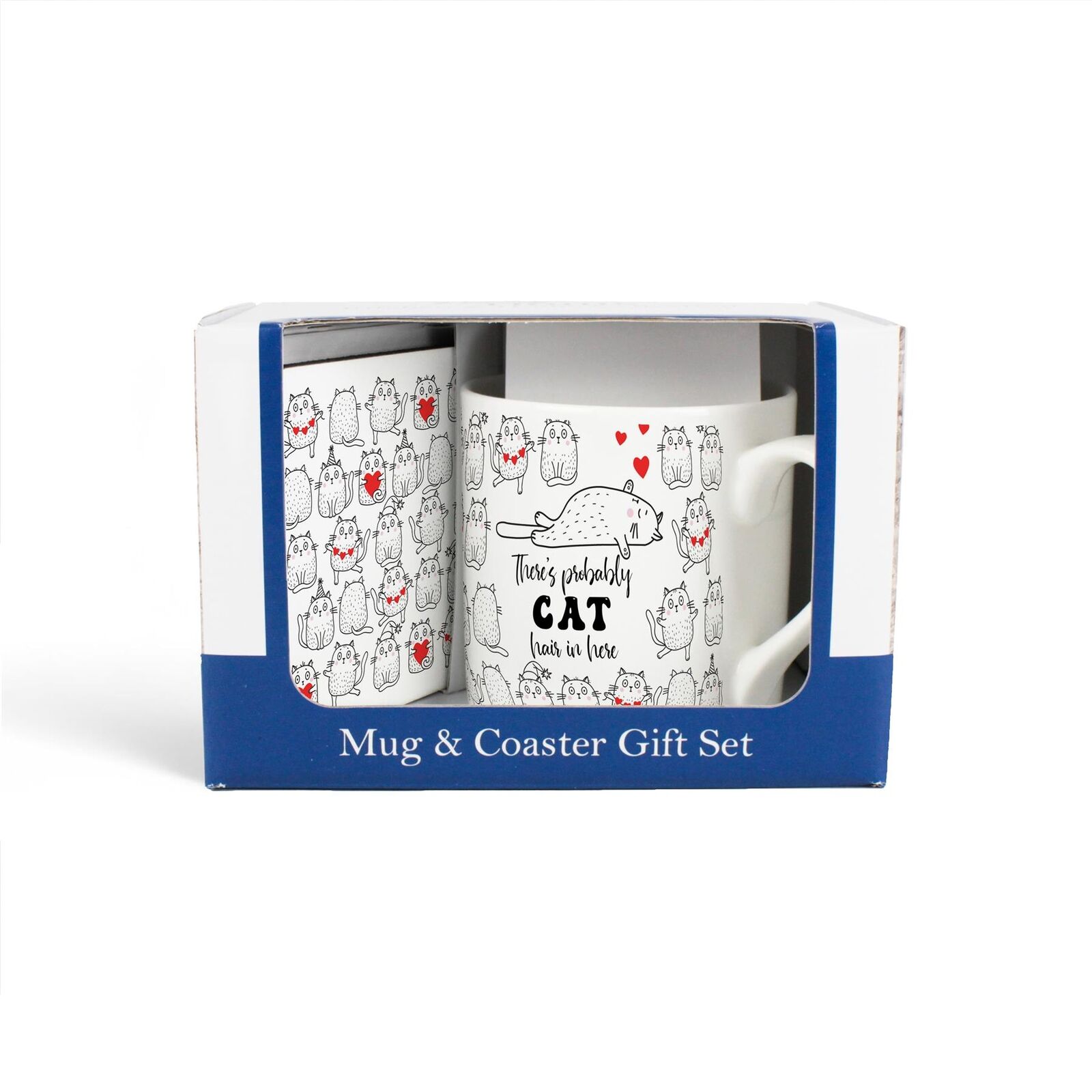 Novelty Cat Mug & Coaster Gift Set - Bone China/Cork Valentines Day Present
