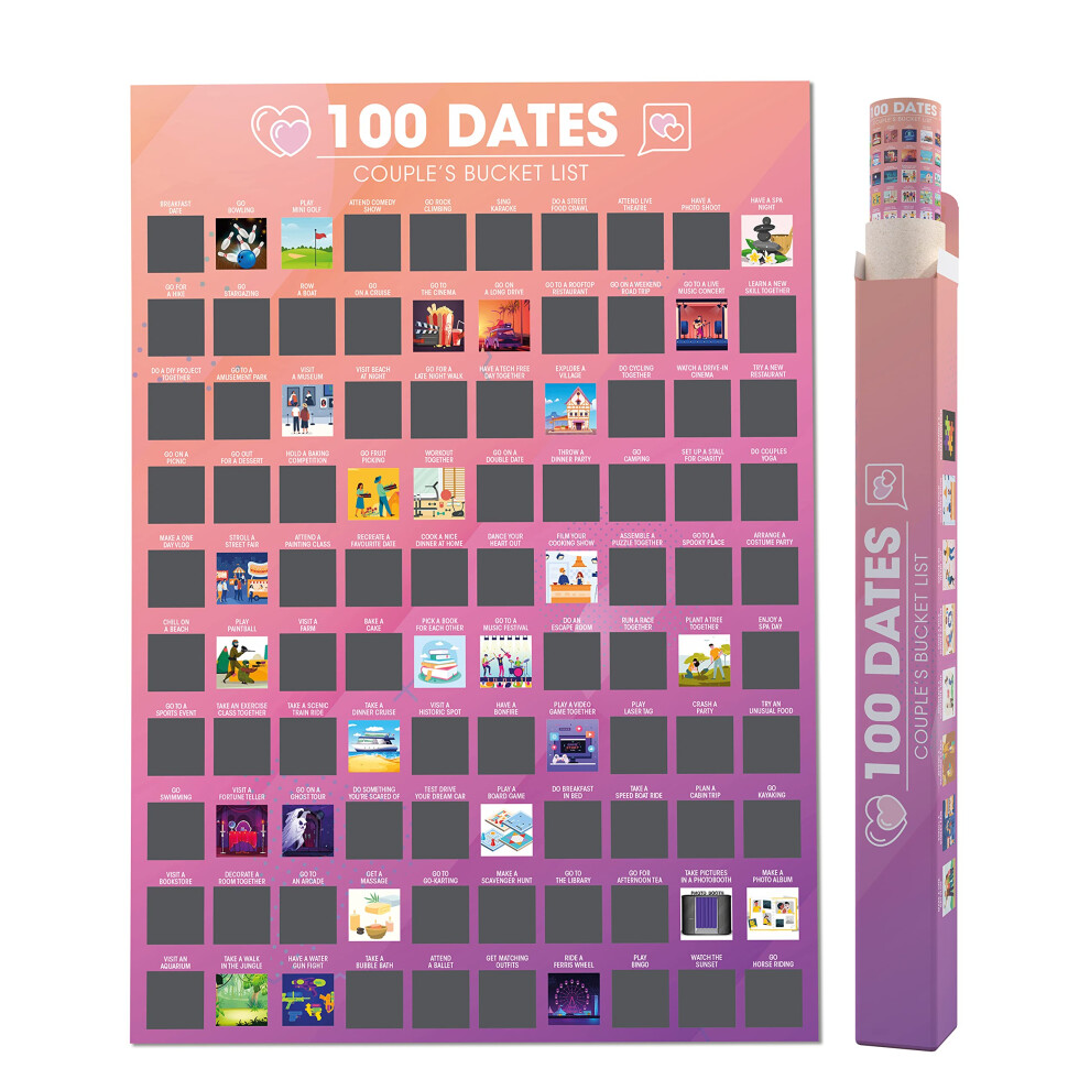 100 Dates Scratch Off Poster - Bucket List Scratch Poster - 100 Things to do for Couple's - Best Valentines day Gift, Anniversary, Girlfriend or