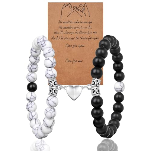 Maynor Matching Bracelets for Couples - 2 Pcs Natural Stone Magnetic Beaded Long Distance Bracelet With Wish Card - Gifts for Boyfriend Girlfriend Lover His Hers Friend Valentines Day