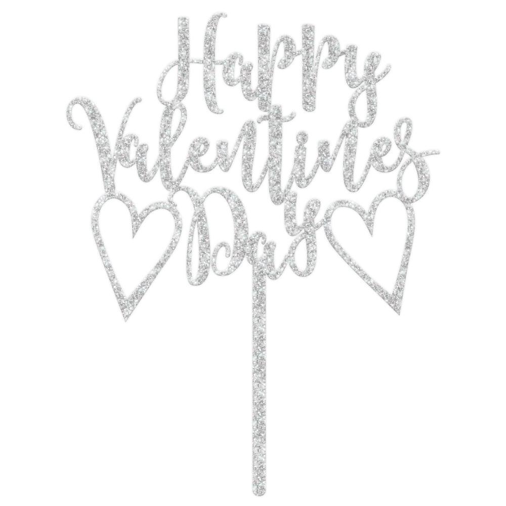 Cake Topper Pick Make A Wish Silver Glitter Happy Valentines Day Acrylic Cupcake