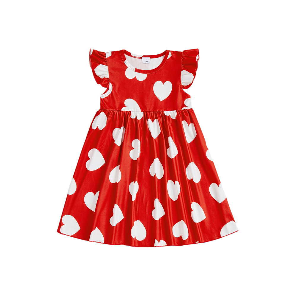 (4-5 Years, Red) Toddler Little Girl Valentines Dress Heart Print Flying Sleeve A-line Princess Dress Cute Spring Clothes