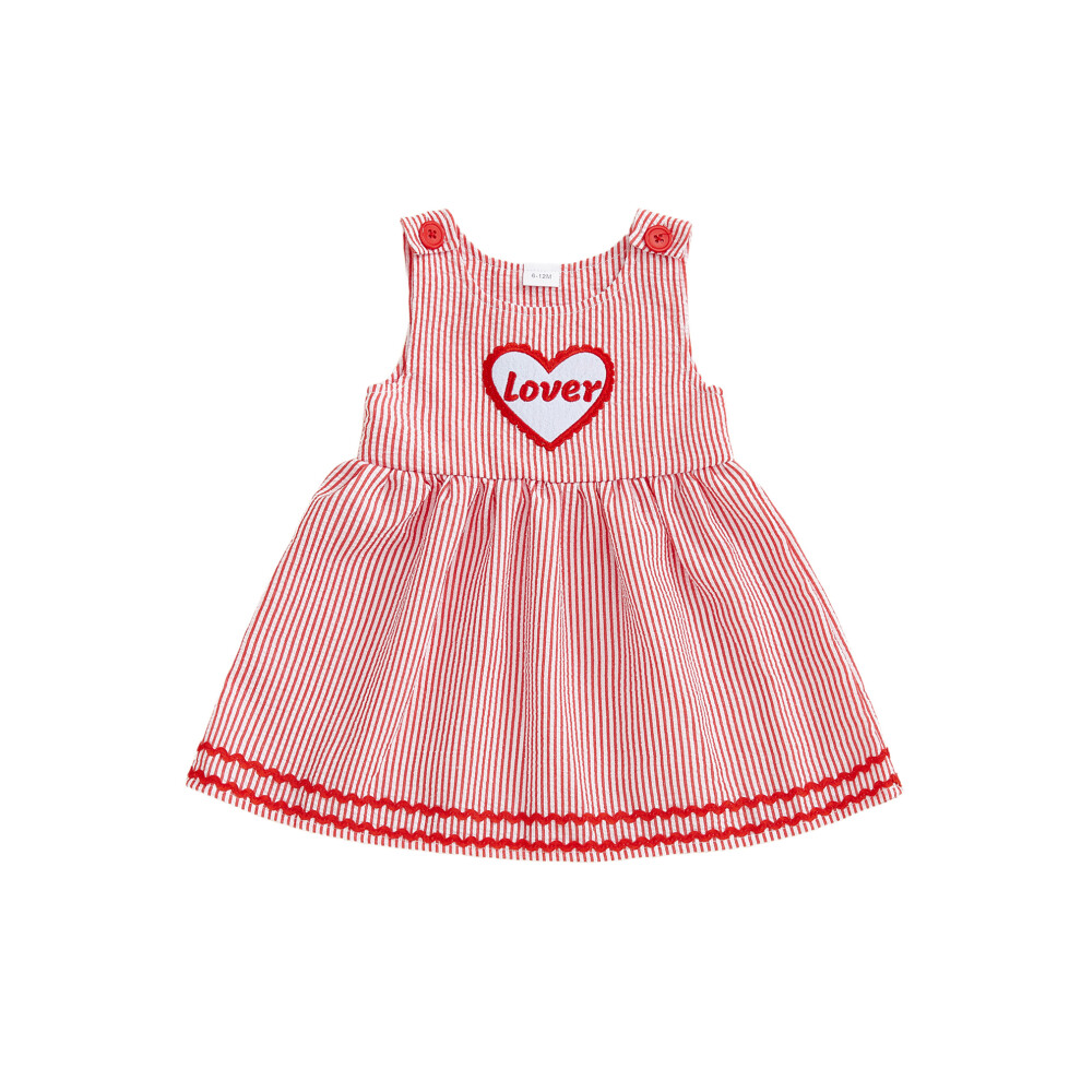 (2-3 Years, Red) Toddler Baby Girls Valentines Dress Cute Fashionable Letters Heart Embroidery Sleeveless Striped Dress