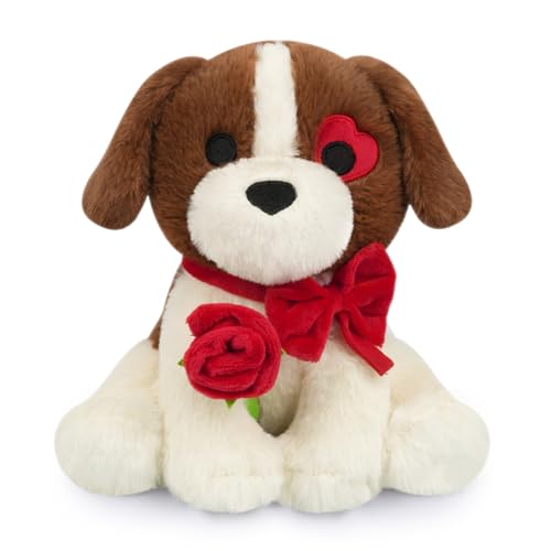 MUFEIRUO Dog Teddy with Rose,Valentines Gift for Her Kids Girlfriend,Valentine's Day Plush Doll Toys,Cute Dog Plushie Stuffed Animals,Home Decorations Party Favor,Gift for Boys and Girls (White Dog)