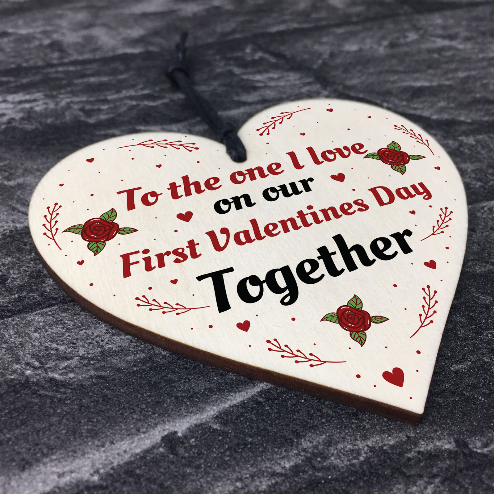 First 1st Valentines Day Together Gift For Boyfriend Girlfriend Red Wooden Heart