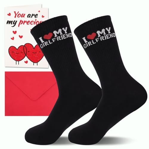 GADITIEK Valentines Gift for Him, Boyfriend Gift Set with “I Love My Girlfriend” Socks and Greeting Card, Cute Valentines Gifts for Boyfriend, Anniversary - Gifts for Him, Birthday Present for Men