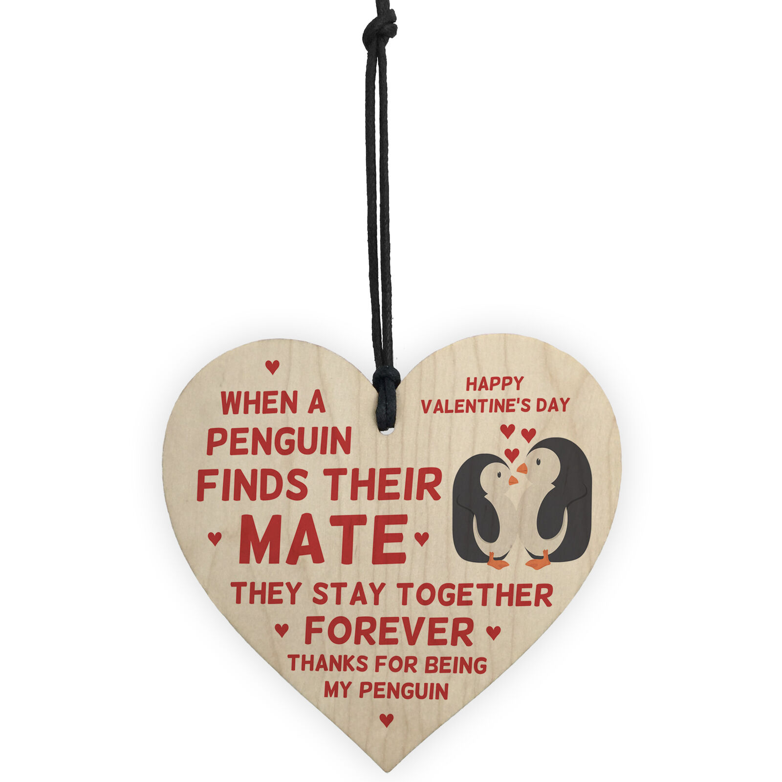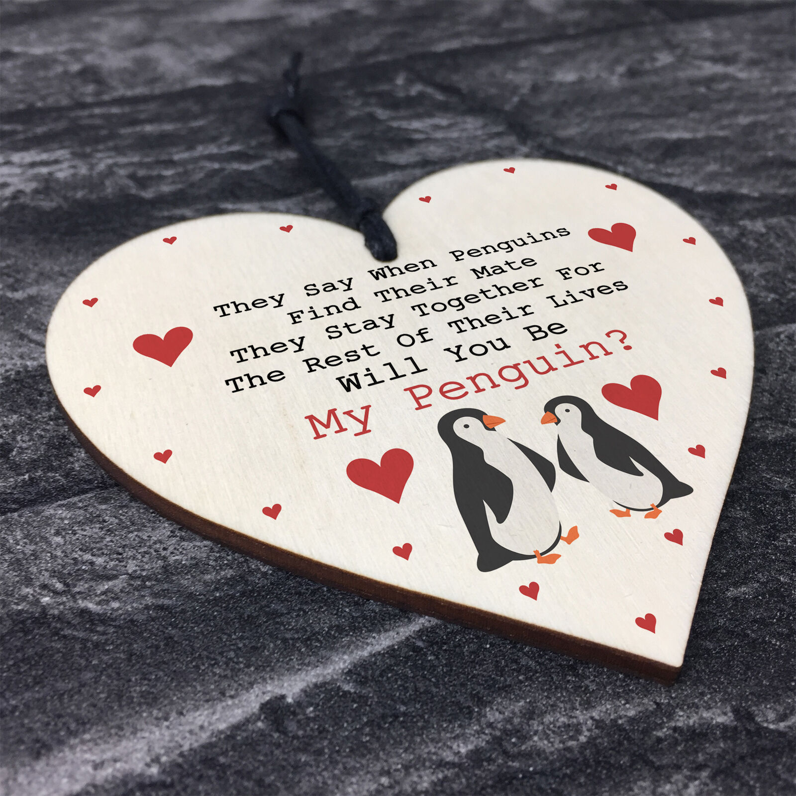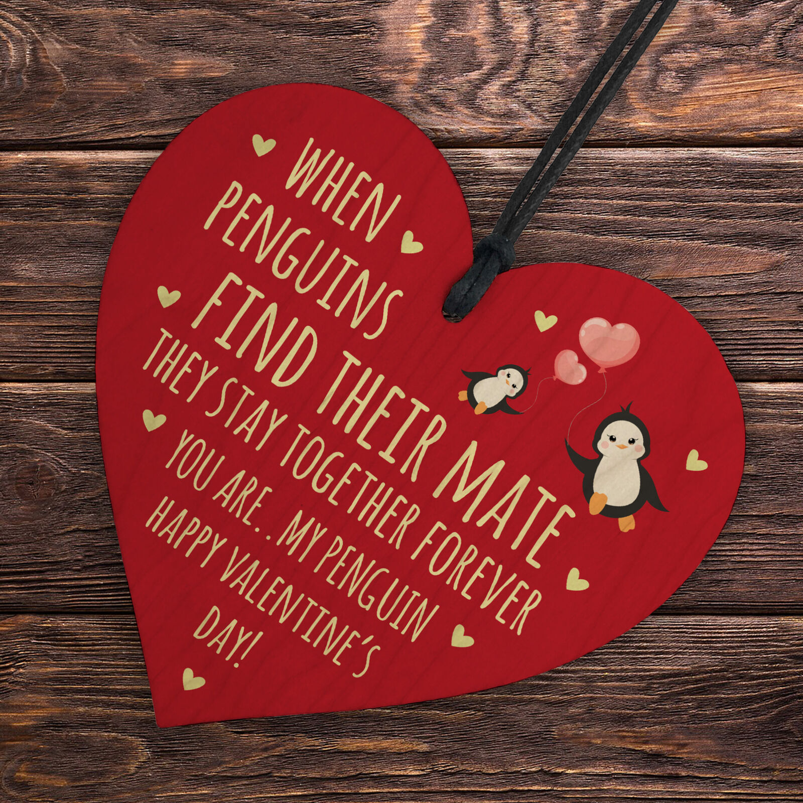 Valentines Day Gift For Him Her Girlfriend Boyfriend Wife Wood Heart Penguin