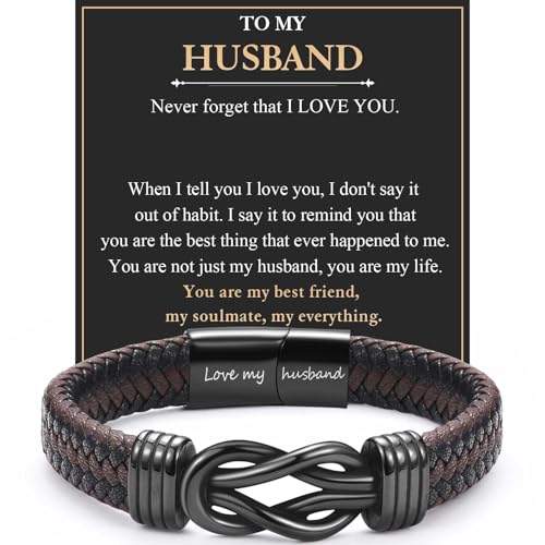 CheersLife Husband Gifts, Engraved Leather Bracelet Gifts for Husband from Wife, Anniversary Birthday Christmas Presents for Men, Valentines Gift for Him