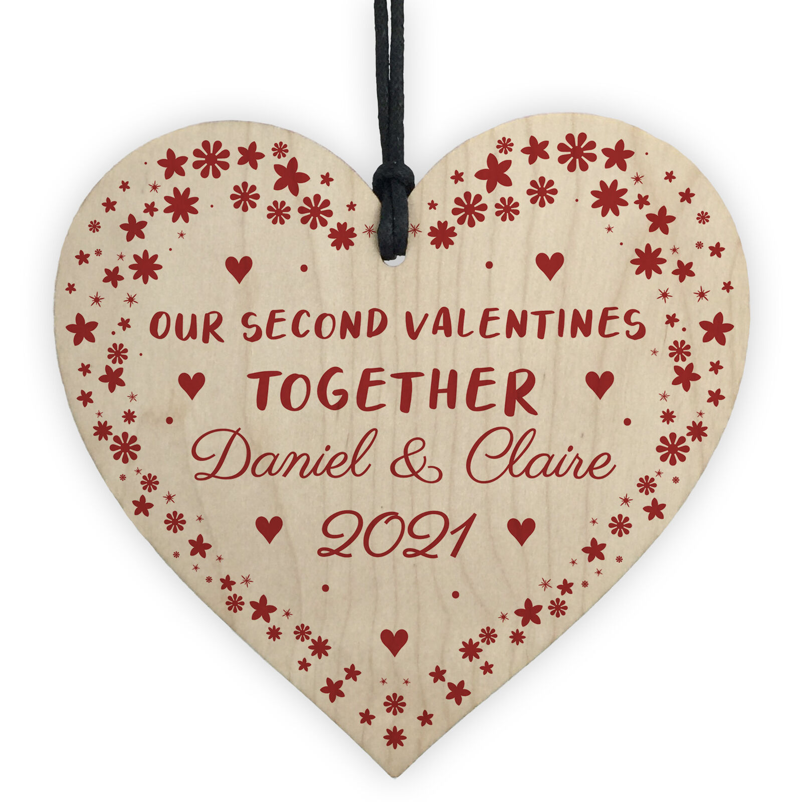 Second Valentines Day Gift For Couple Him Her PERSONALISED Wood Heart
