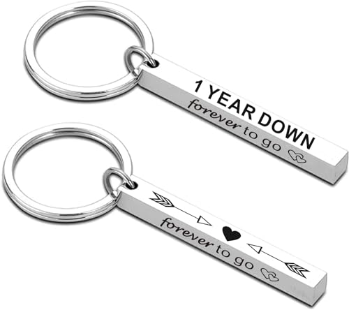 UU-MART Anniversary Valentines Gift for Him Her,1 Year Down Forever To Go Keyring Gift For Couples Husband Wife,1st Wedding Anniversary Valentines Gifts for Him(1 PCS Four-sided) (1 Year Down)