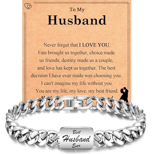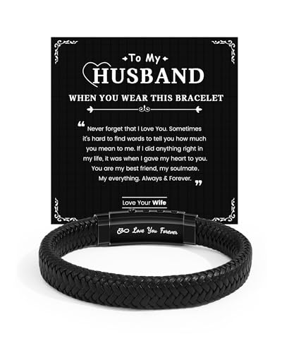 EYQV Husband Gifts, Engraved Bracelet Husband Gifts from Wife, Christmas Birthday Valentines Gift for Him, Stocking Fillers for Men