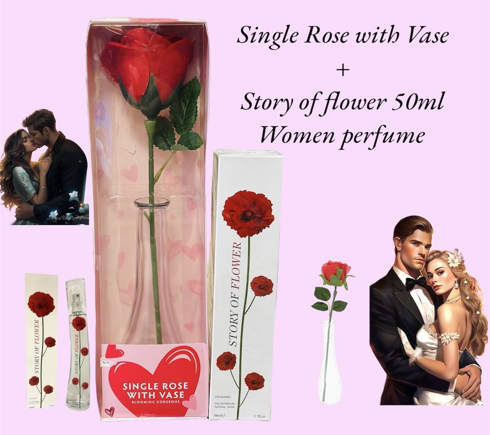 Valentine's Day Gift Set Wife Girlfriend Present Single Rose With Vase Perfume