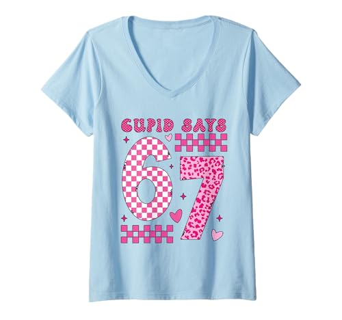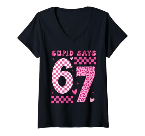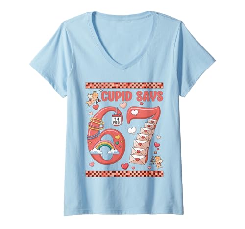 Women's Funny Valentines Idea Cupid 67 Couple V-Neck T-Shirt