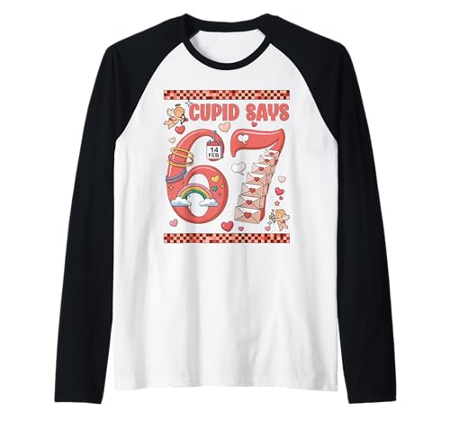 Funny Valentines Idea Cupid 67 Couple Raglan Baseball Tee