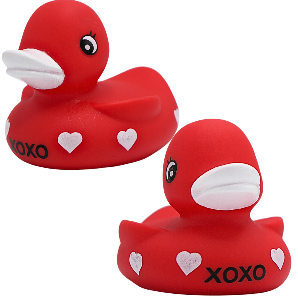 4E's Novelty 3"" Valentines Rubber Duck 2 Pack - Large Red XOXO Sweetheart Rubber Ducky for Valentines Day Decoration Idea Duck for Jeep Ducking or