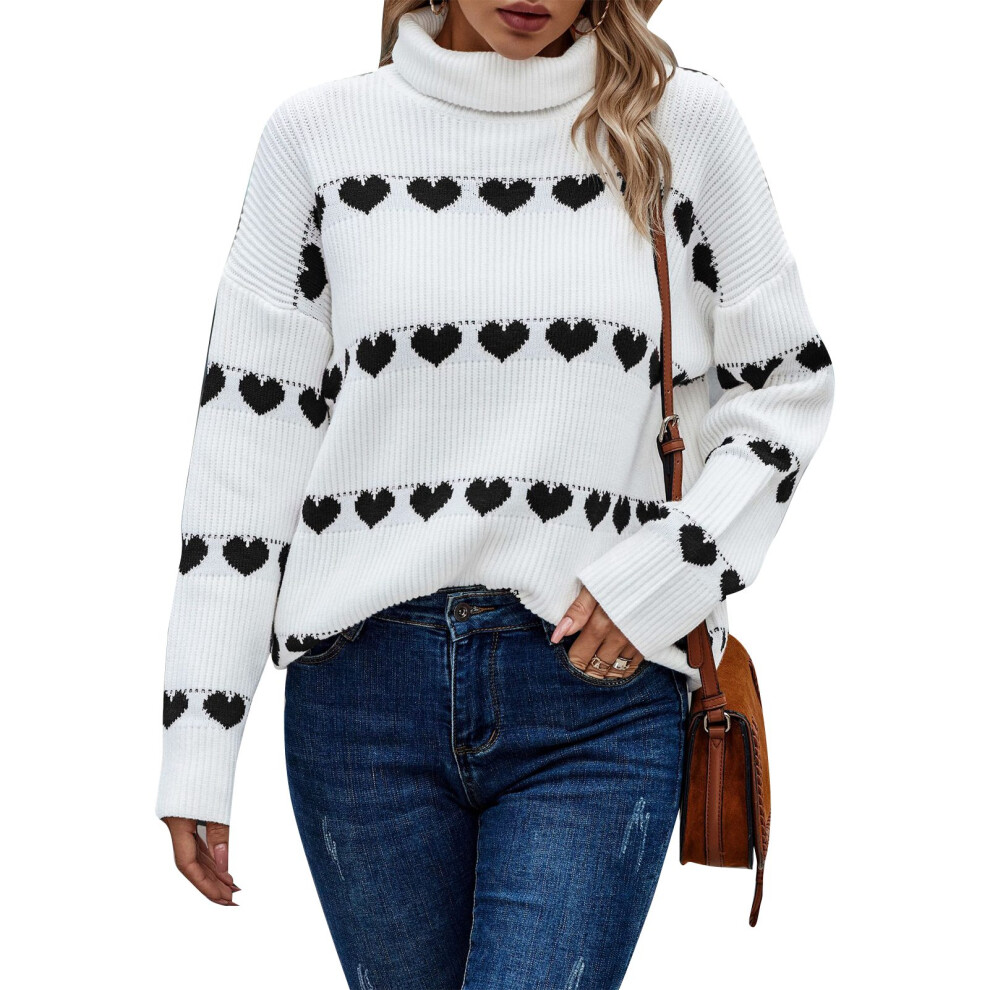Knit Sweater for Women, Heart Print Long Sleeve Crew Neck Pullover with Soft Fabric, Casual Loose Fit Winter Fashion Top, Valentines Day Gift Idea