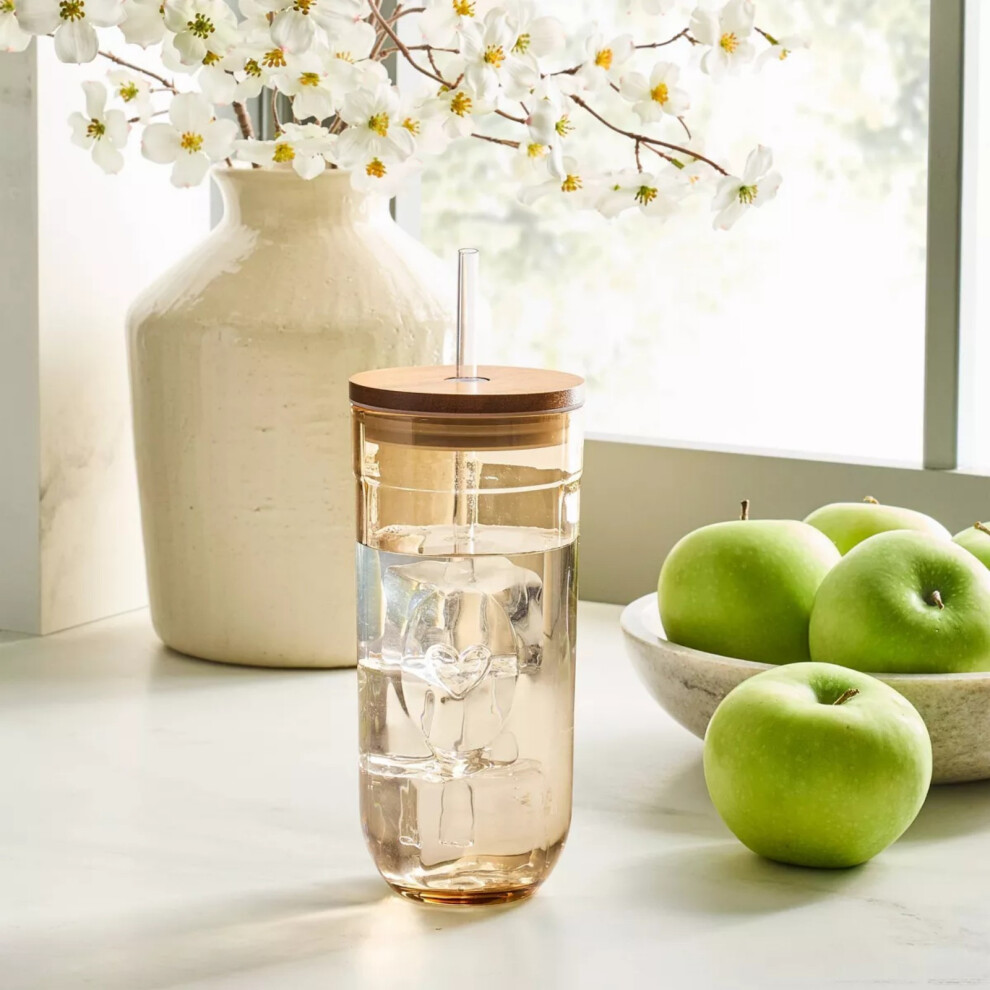 (White) Heart Shaped Glass Tumbler With Wooden Lid 21oz Fluted Rounded Drinking Cup Water Glass For Home Decor Valentines Day Gift Idea